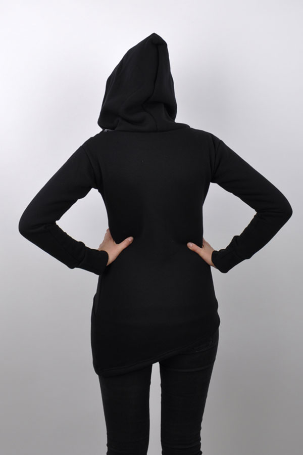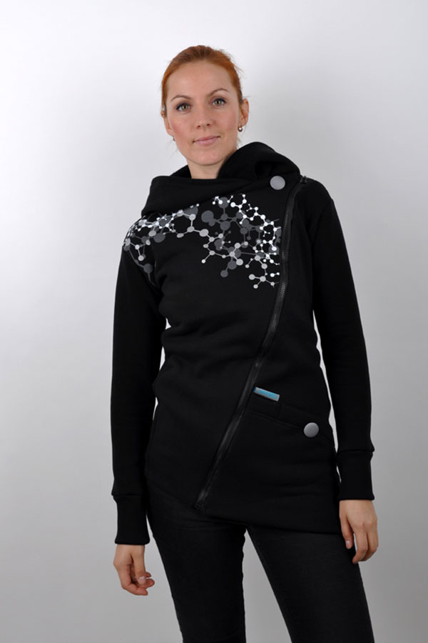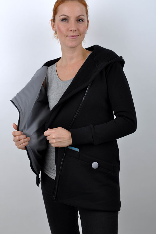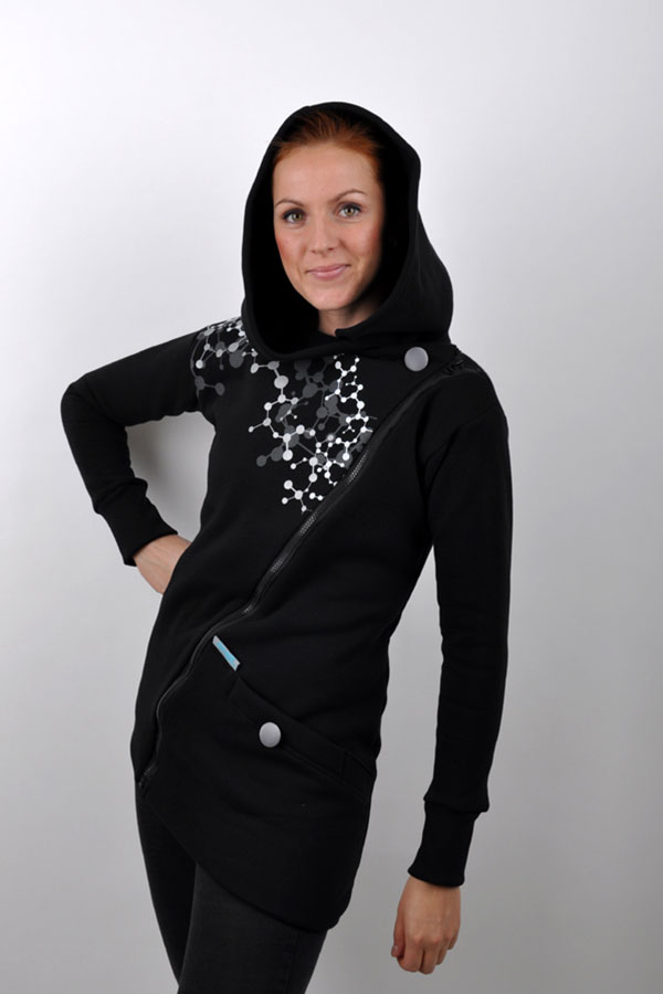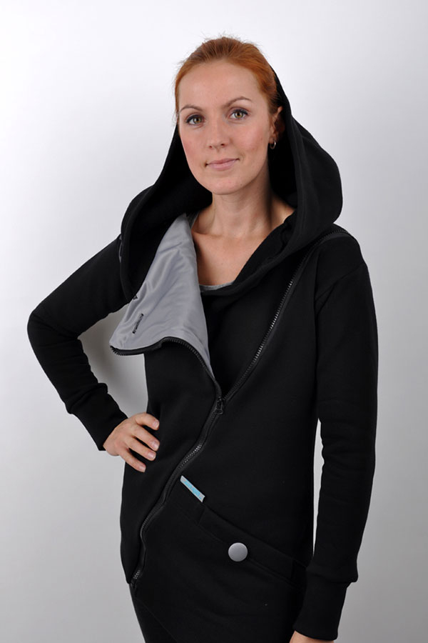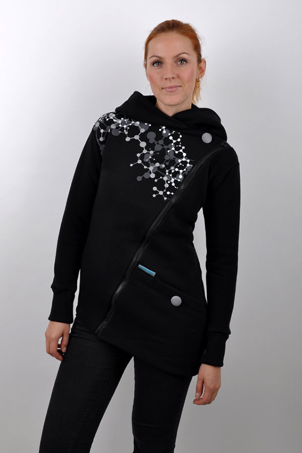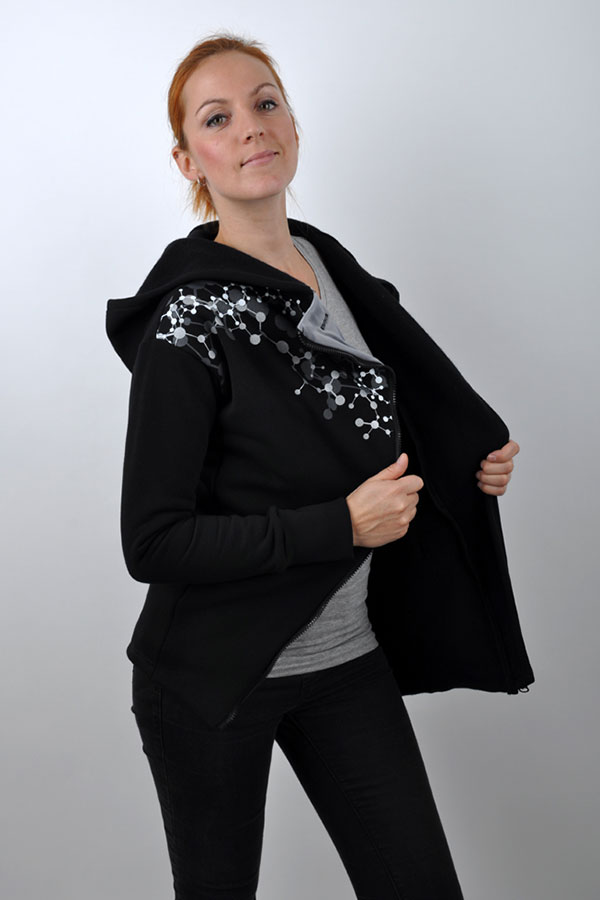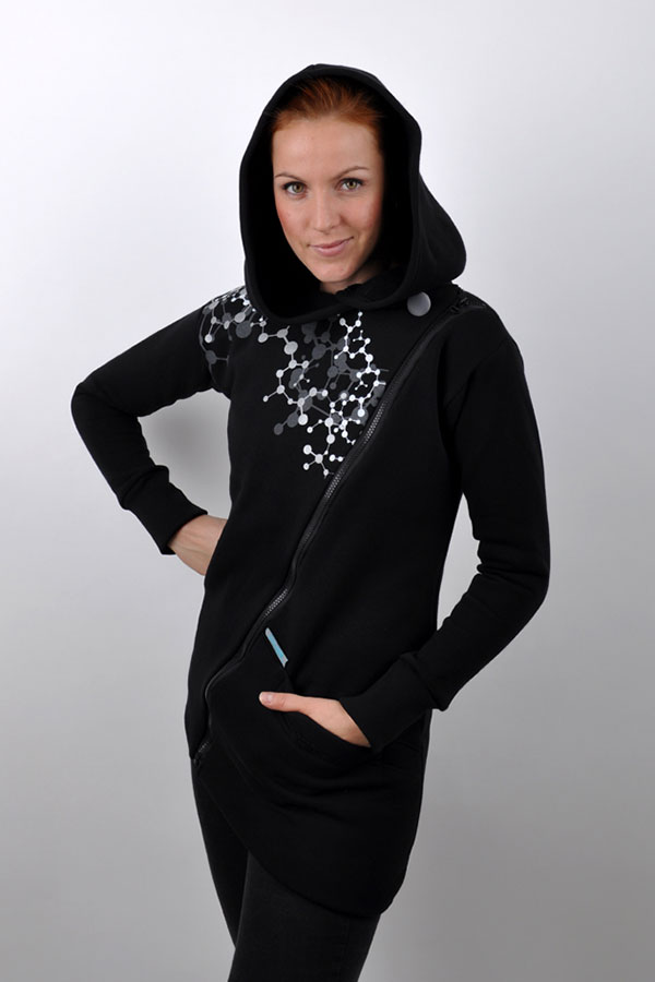 - asymetrická hřejivá mikina/kabátek s potiskem a kapucí